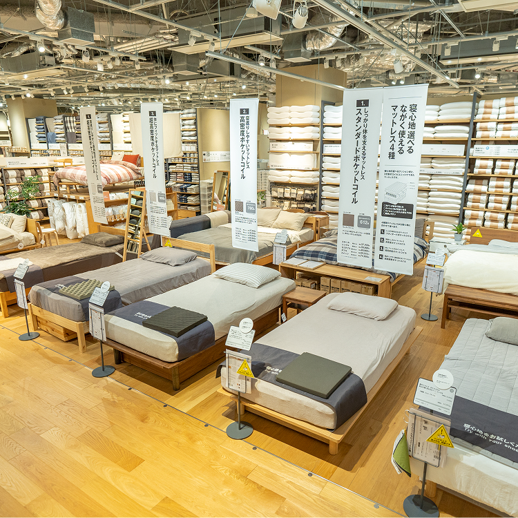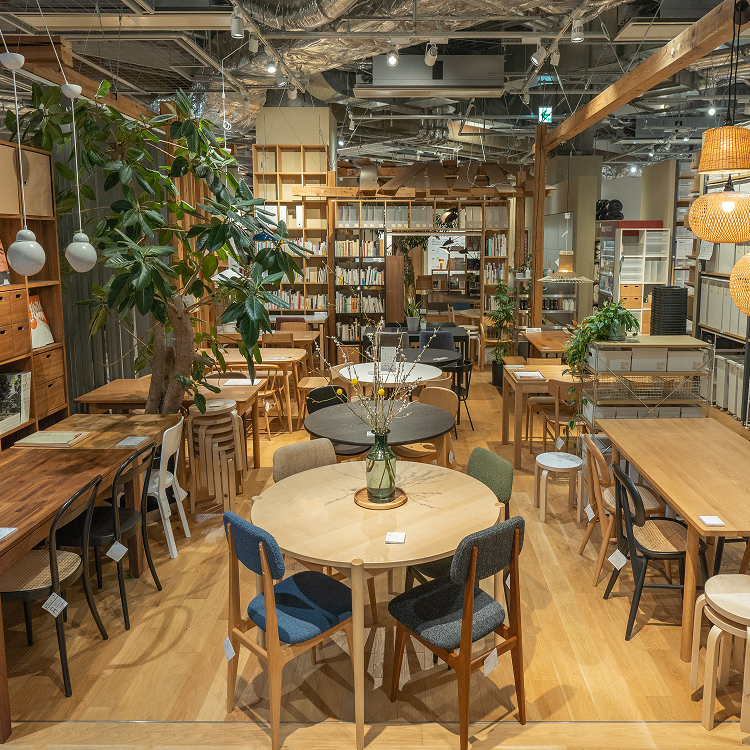 衣・食・住を支える商品群を、3フロアに展開する関東最大級の無印良品。IDÉEやセレクト家具、個性豊かなグリーン、アートなど、インテリアの展示数は国内最大。