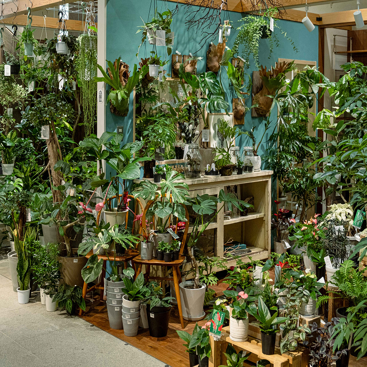 暮らしに彩りを添える観葉植物や花を揃えています。鉢は別売りとなり、お好みなものをご自由にお選びいただけます。育てるのが不安な方でも安心してお買い求めいただけるよう、品種に応じた育成のコツもご紹介します。卓上植物・大型植物・吊り植物など様々取り揃えております、大型植物については専用車で大切にお届けします。切り花は毎週金曜日に入荷します。四季折々のお花や枝ものなどお部屋を明るくするお花をご用意しております。