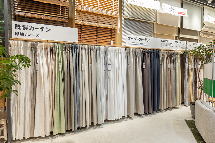 寝具・カーテン 寝心地と素材へのこだわりから生まれた、布団カバーやケット、枕など豊富な種類を揃えています。実際に触れるサンプルをご用意しております。 カーテンは3mを超える大型生地サンプルをご用意しております。